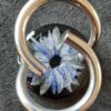 yoritom-Hook mit Kornblume von meinem Balkon. Die Blumenteile werden sorgfältig auseinander separiert und zwei Wochen oder länger im Buch gepresst, dann auf dem Haken mit Hilfe von UV-Harz Schicht für Schicht wieder zusammen gesetzt. So wird yoritom-Hook ein Archiv von Kornblumen, die jedes Jahr aufs neue blühen.