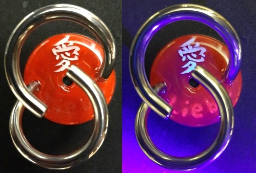 Ai (= Liebe) auf rot. Unter dem UV-Licht erscheint die Buchstaben «Liebe». 20260302.