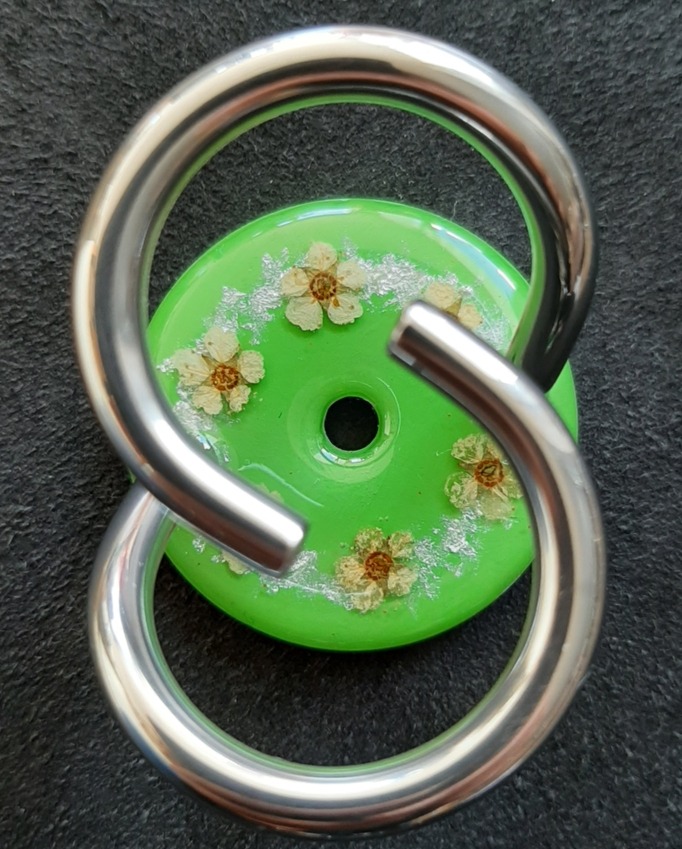 4 x Katzenauge mit Blätter auf metallweiss. 20240823