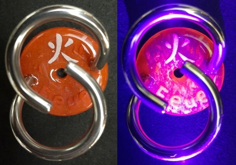 Hi (= Feuer) auf rot. Unter dem UV-Licht erscheit eine Framme. 20260210.