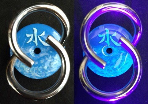 Mizu (= Wasser) auf blau. Es leuchtet unter dem UV-Licht. 20260130.