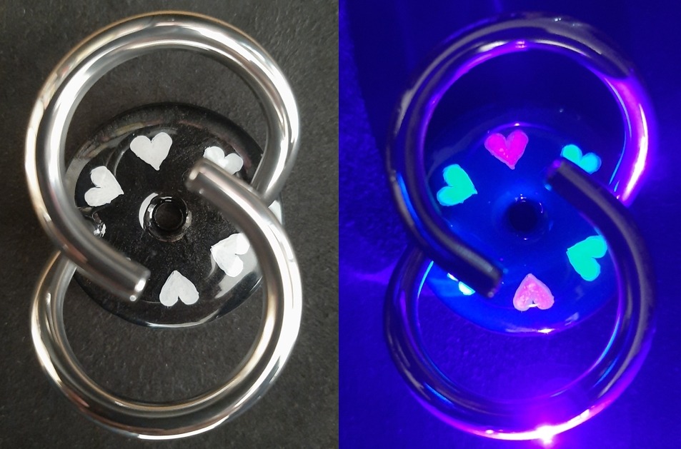 Herz weiss auf schwarz. Die Herzen leuchten in verschidenen Farben unter dem UV-Licht_20260327